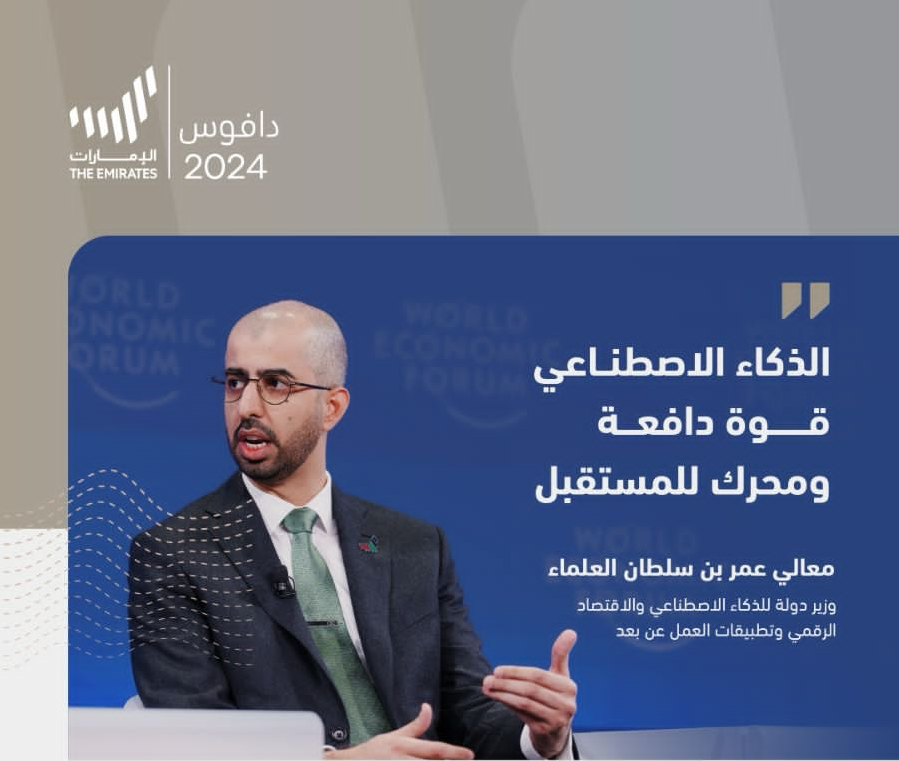 جاء ذلك، خلال جلسة بعنوان: "هل يعتبر الذكاء الاصطناعي محركا للثورة الصناعية الرابعة؟"، ضمن أعمال الدورة الـ 54 للمنتدى الاقتصادي العالمي، شارك فيها معالي عمر سلطان العلماء، وكريستيانو أمون الرئيس والرئيس التنفيذي في "كوالكوم"، وجولي سويت الرئيس والرئيس التنفيذي في "أكسنتشر" أيرلندا، وعضو مجلس أمناء المنتدى الاقتصادي العالمي، وأرويند كريشنا الرئيس والرئيس التنفيذي في "آي بي إم"، وأدارتها زاني مينتون بيدوز، رئيس تحرير "ذي إيكونوميست".