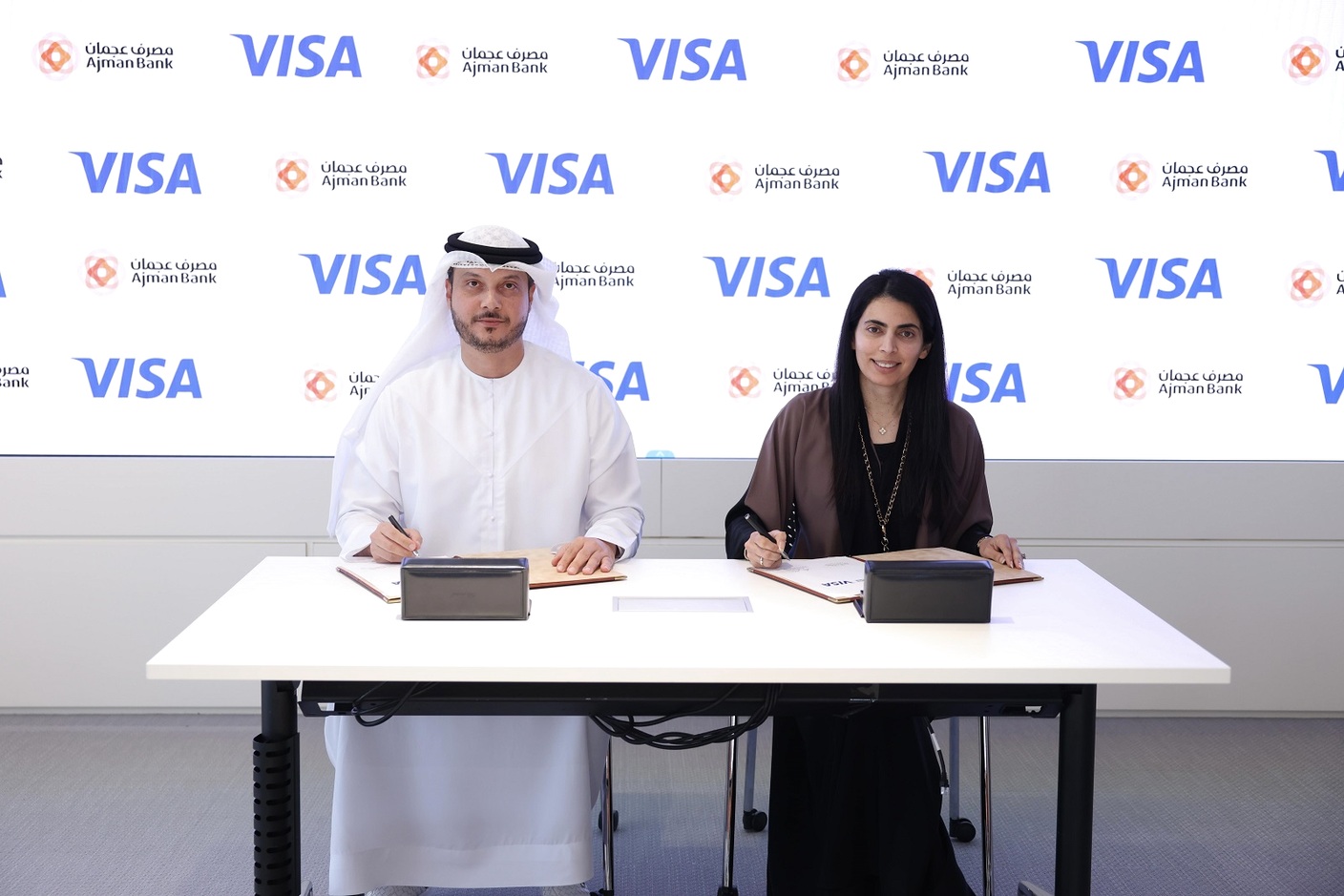 أعلن مصرف عجمان إطلاقه بطاقة مصرف عجمان أكسلرايت الائتمانية للأعمال بالتعاون مع فيزا، حيث تم توقيع مذكرة التفاهم بين مصرف عجمان وشركة فيزا في حفل توقيع خاص حضره مصطفى الخلفاوي، الرئيس التنفيذي لمصرف عجمان والدكتورة سعيدة جعفر، مديرة المجموعة والنائب الأول للرئيس لشركة فيزا في دول مجلس التعاون الخليجي.