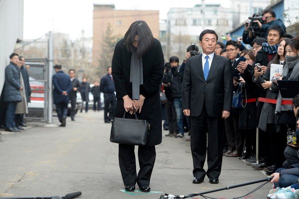 الفتاة الظاهرة في الصورة هي ابنة رئيس شركة الخطوط الكورية الجنوبية، هذه الفتاة تسببت في تأخير إحدى رحلات الشركة لمدة 11 دقيقة لأنها أهانت المضيف، بعدما أحضر لها الجوز الذي طلبته في كيس وليس على صحن. كما عملت (هيذر تشو) التي كانت تشغل حينها منصب نائب الرئيس الأول للشركة، على طرد المضيف. وحين علم أبوها بالحادث طلب عقد مؤتمر صحافي في مكان عام واحضرها فاعتذر أمام الملأ قائلا: "اعتذر جدا لأنني لم أربيها تربية حسنة واطلب منكم الصفح والمغفرة"، كما أعفاها من منصبها.