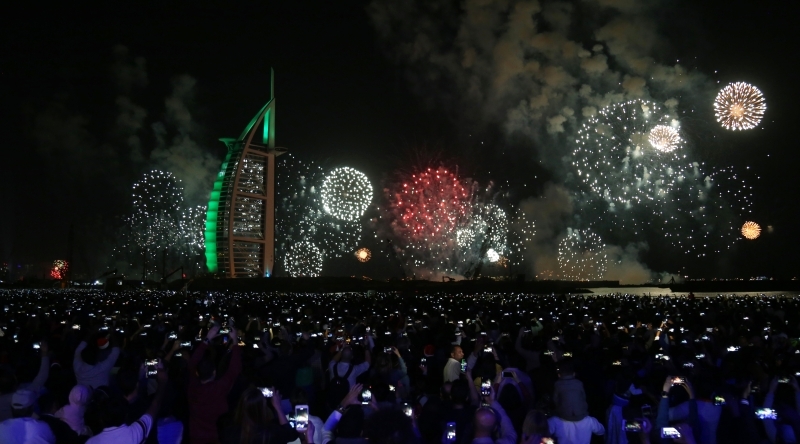 استقبلت دبي عام 2020 باحتفالات تألقت فيها سماء المدينة بعروض الألعاب النارية والأضواء الباهرة.