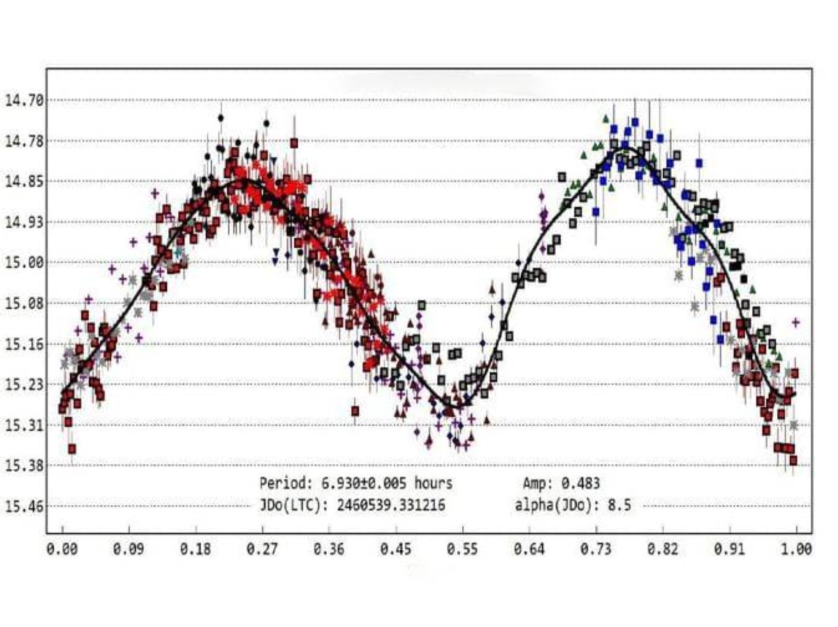 وتتمثل عملية الرصد بتصوير الكويكب مجموعة صور متتالية لمدة عدة ساعات وعبر ليالي متعددة، ومن ثم يتم تحليل كل صورة على حدة، ويتم قياس شدة لمعان الكويكب في كل واحدة من هذه الصور، وبعد التحليل يلاحظ اختلاف لمعان الكويكب بشكل دوري، وسبب هذا الاختلاف هو دوران الكويكب حول نفسه، وذلك لأن شكل الكويكبات الصغيرة غير منتظم، ومع دورانها حول نفسها تختلف نسبة عكسها لأشعة الشمس، وبالتالي يختلف لمعانها الظاهري كما نراه من الأرض، ومن خلال تحديد الزمن الدوري للاختلاف يتم معرفة مدة دوران الكويكب حول نفسه.