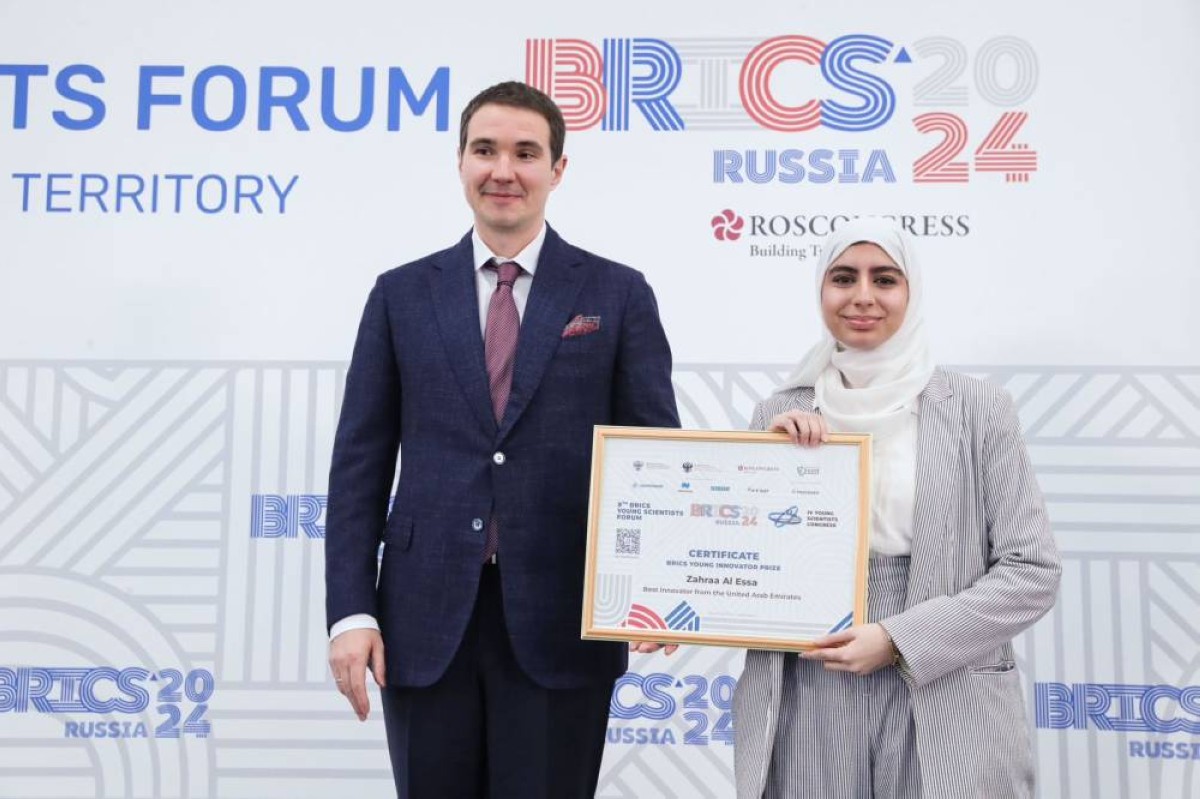 أضافت الطالبة الإماراتية زهراء محمد العيسى، المنتسبة لنادي الإمارات العلمي التابع لندوة الثقافة والعلوم، إنجازاً جديداً إلى سجلها الحافل، حيث حصلت على شهادة أفضل المبتكرين عن ابتكارها «إنتاج الديزل الحيوي المستدام»، وذلك ضمن مشاركة وفد دولة الإمارات في الدورة التاسعة من منتدى العلماء الشباب في دول البريكس، والدورة السابعة لجائزة البريكس للمبتكرين الشباب، التي استضافتها مدينة سوتشي الروسية أخيراً.