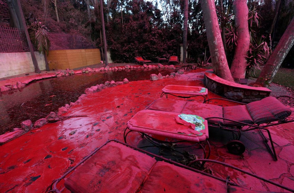 في خضم الدمار والانقاض المشتعلة غطت مادة وردية اللون جميع الأماكن في لوس أنجلوس، من أسطح المنازل إلى السيارات والشوارع، فما هي هذه المادة؟