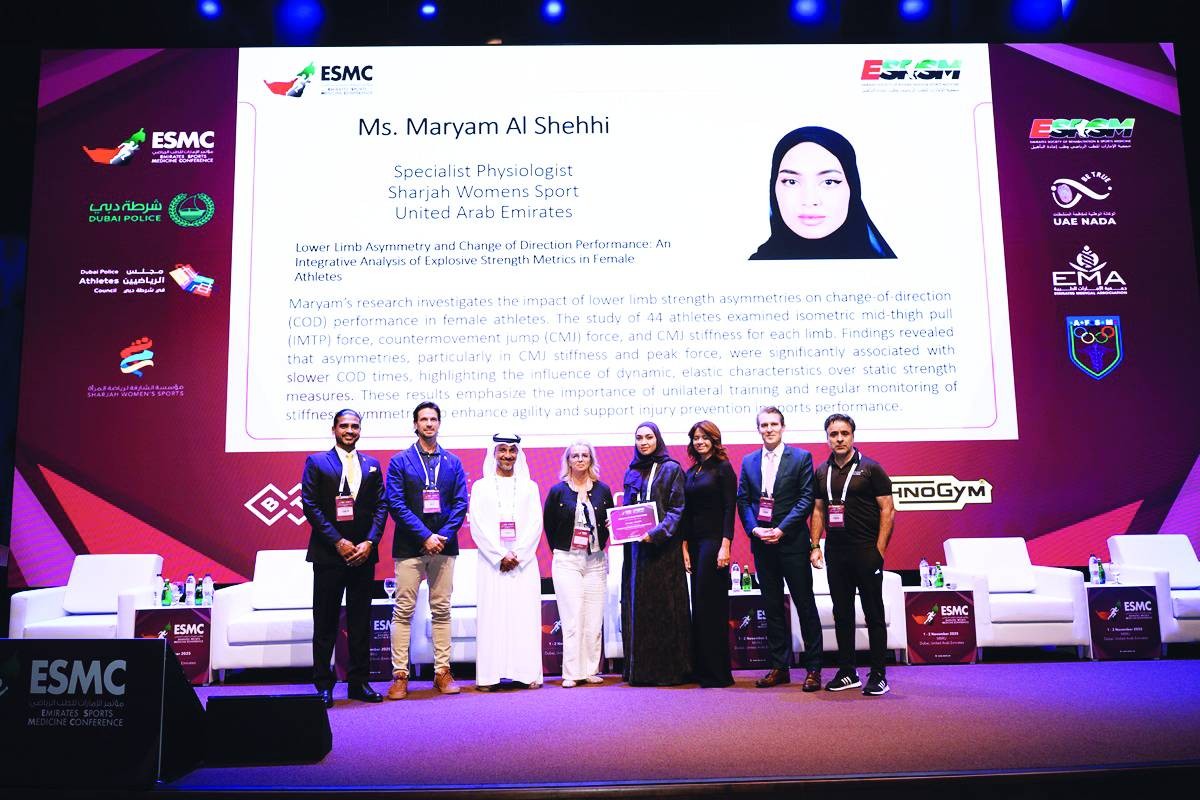 مريم الشحي تفوز بجائزة الباحث الشاب في الطب الرياضي والأداء الرياضي