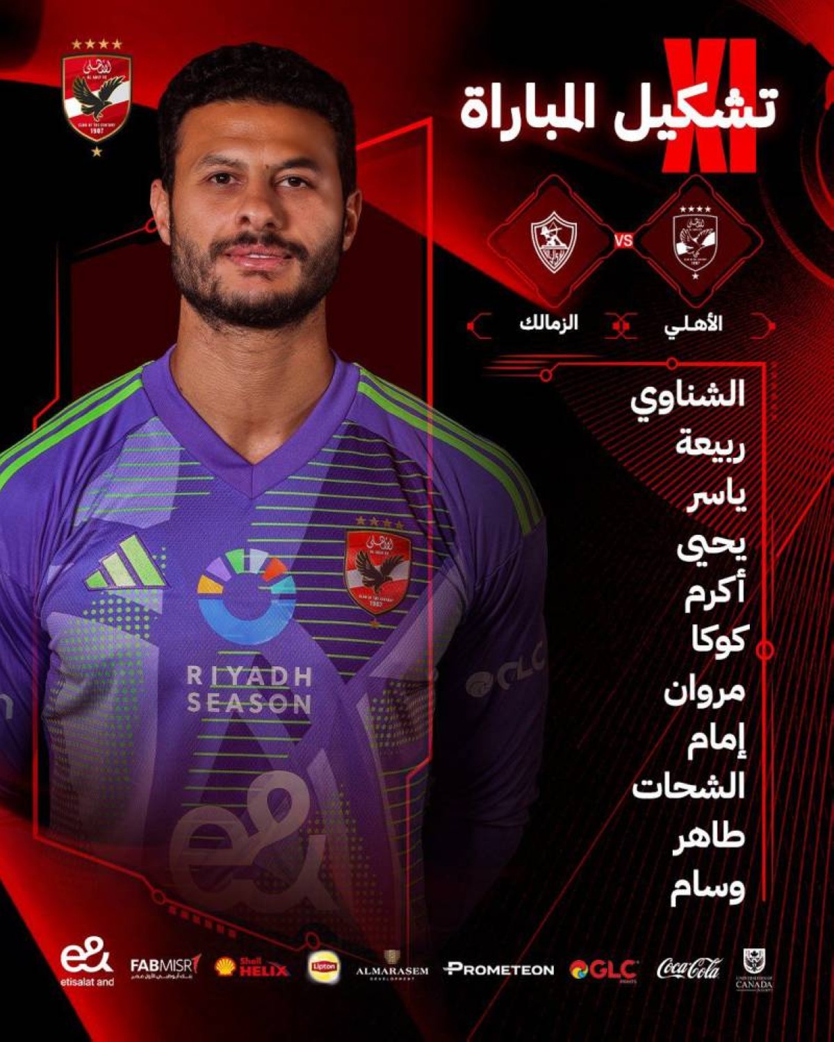 وجاءت تشكيلة النادي الأهلي على النحو التالي: