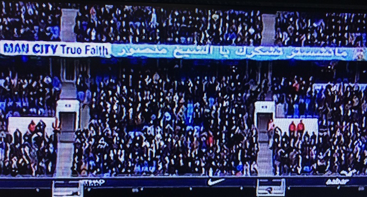 وعلّقت مجموعة من جماهير مانشستر سيتي لافتة في المدرجات باللغة العربية عليها عبارة "مانشستر تشكرك يالشيخ منصور".