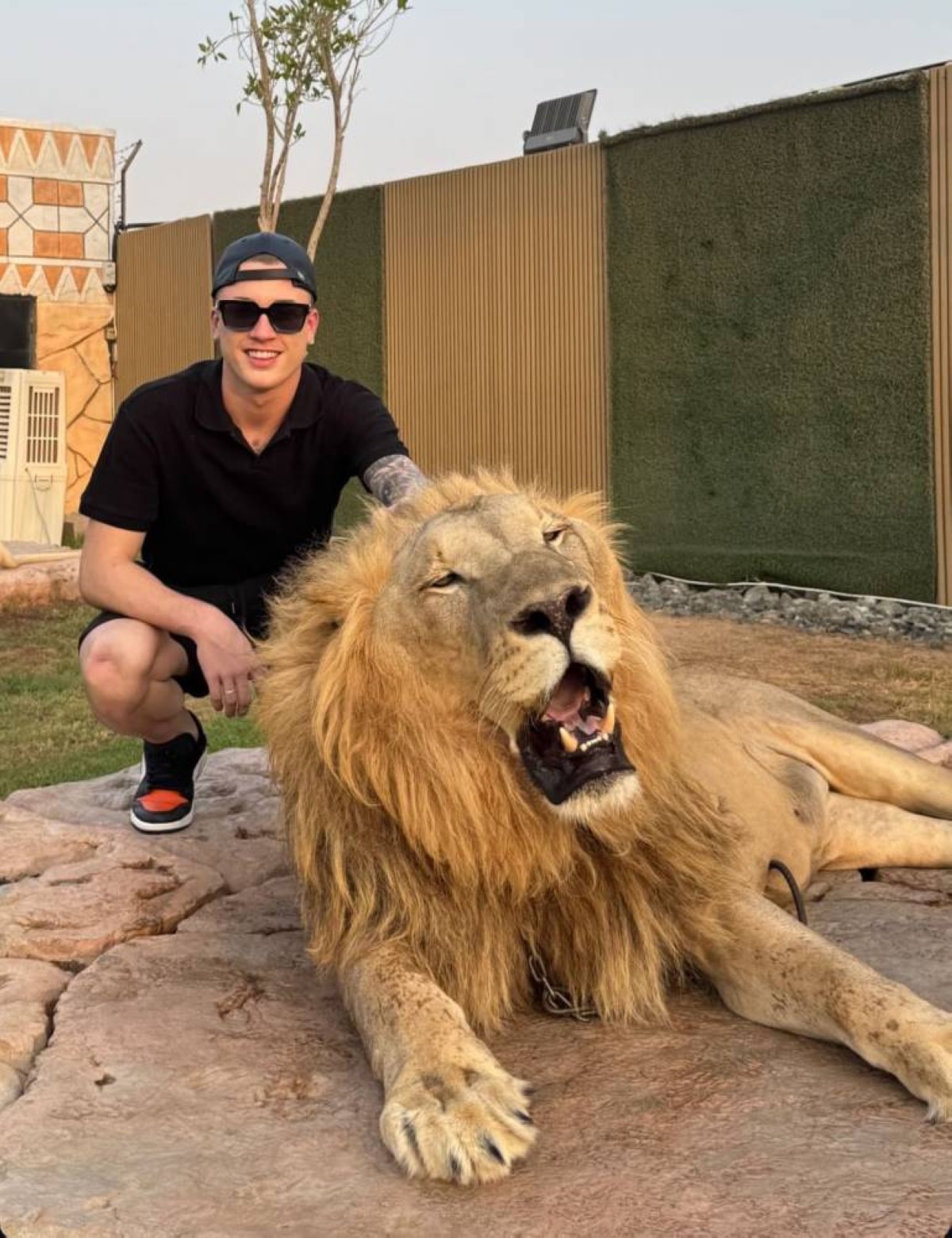وكان المشهد الأبرز خلال الرحلة عندما التقط صوراً إلى جوار الأسد بهدوء واطمئنان في خطوة جريئة كشفت عن روح المغامرة التي يتمتع بها، ما أثار تفاعلاً واسعاً بين متابعيه على منصات التواصل الاجتماعي الذين اعتبروا الخطوة دليلاً على شخصيته الجريئة وحبه لخوض التجارب الجديدة والمتفردة.