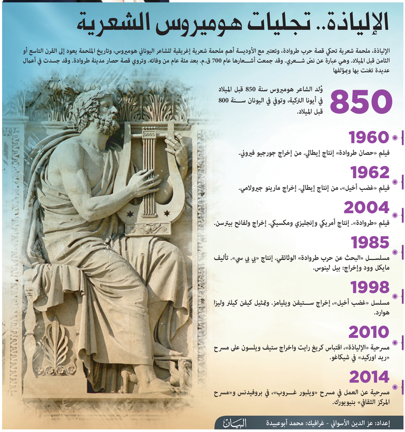 الإلياذة، ملحمة شعرية تحكي قصة حرب طروادة، وتعتبر مع الأوديسا أهم ملحمة شعرية إغريقية للشاعر اليوناني هوميروس، وتاريخ الملحمة يعود إلى القرن التاسع أو الثامن قبل الميلاد. وهي عبارة عن نصّ شعري. ويقال إنه كتبها مع ملحمته الأوديسا. وقد جمعت أشعارها عام 700 ق.م. بعد مئة عام من وفاته. وتروي قصة حصار مدينة طروادة.