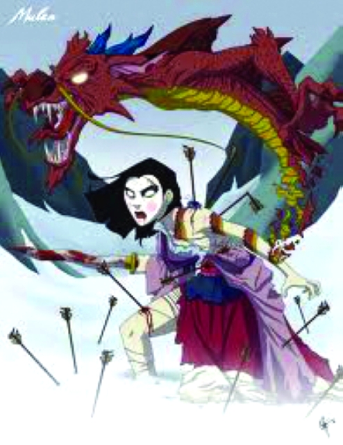 لا أحد في قلبها، لا أحد في عقلها، ماذا يقلقها؟ قالت مولان أخيراً: يهاجم الغزاة الصين، والامبراطور يدعو إلى حشد جيش كبير. يريد من كل بيت مقاتلاً، ويدعو المحاربين القدماء إلى الجيش. قرأت في السوق اللوائح بأسماء المحاربين القدماء، قرأت اسم والدي فيها.