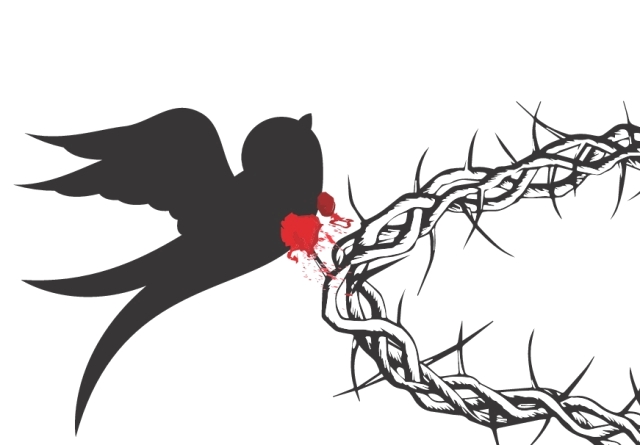 القس رالف يريد أن يكون إنساناً خارقاً ورجلاً عادياً.. ومن جهة أخرى، يريد الأب بادي الفقير أن تلد زوجته مثل الغنمة كل موسم! وعكسه ليوك يريد أن تدر ميغي الحليب (المال) دون حمل! كل هذه الشخصيات أصناف من طيور الشوك، إنها تبحث عن أشواكها وتصنعها بأياديها، وهي تترنم دون وعي منها بأنشودة الحياة.