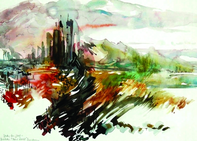 قدم الرسام الأميركي هارولد ويستون، لوحة جميلة تحمل انطباعاته عن العالمين القديم والجديد، بعد سماعه سيمفونية دفورجاك التاسعة.