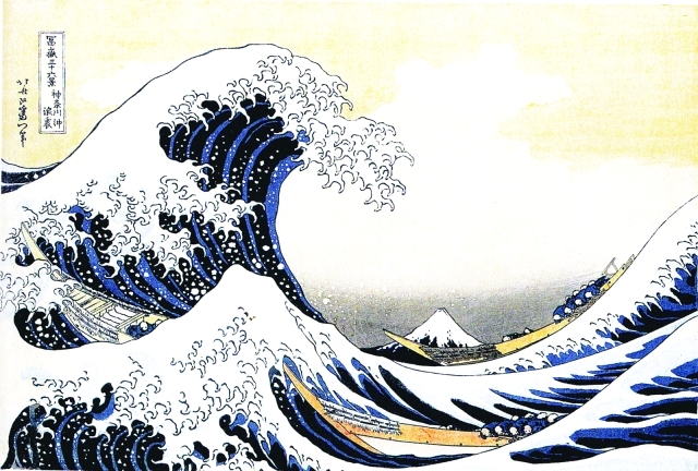 إذ كان للوحات التشكيليين اليابانيين الجميلة المحفورة على الخشب، أثر جمالي مميز وخصوصا تلك التي حملت اسم (الموجة) للرسام الياباني الشهير هوكوساي، والتي أصبحت بناء على طلب ديبوسي، غلاف المدونة الموسيقية للعمل الخاص به «البحر».