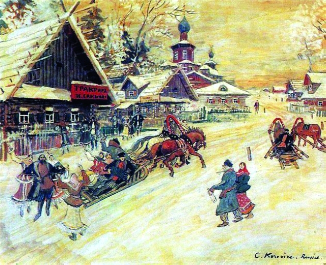 أما لوحة الرسام قسطنطين كوروفين «مرور عربة الترويكا» عام 1930 فهي عمل جميل نستطيع من خلاله سماع موسيقى تشايكوفسكي بسهولة.