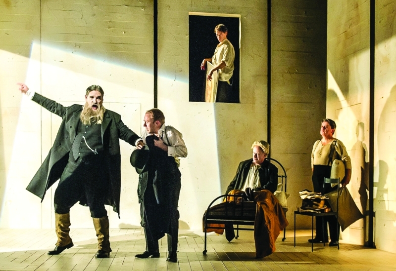 تلائم عبثية صيغة العرض المسرحي الأوبرالي؛ لا سيما أنها تتوافق والجانب الملحمي الذي تحمله الرواية، فضلًا عن التقائها مع طبيعة المسرح العدمي والعبثي. وعليه، قدمها المخرج البرتغالي كريستوفر هامبتون والملحن فيليب غلاس، على مسرح ويلز في دار الأوبرا الملكية بالعاصمة البريطانية لندن، وقدمت الأوبرا قدرا كافيًا من معاناة البطل في سجنه ومحاولات الخروج من هذا