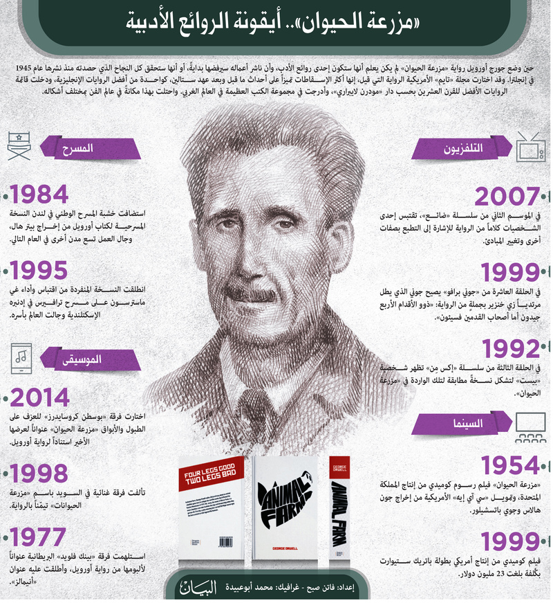 حين وضع جورج أورويل رواية «مزرعة الحيوان» لم يكن يعلم أنها ستكون إحدى روائع الأدب المحظور، وأن ناشر أعماله سيرفضها بدايةً، أو أنها ستحقق كل النجاح الذي حصدته منذ نشرها عام 1945 في إنجلترا.