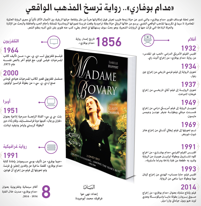 تعتبر تحفة غوستاف فلوبير «مدام بوفاري»، والتي تدور عن حياة زوجة طبيب تعيش فوق إمكانياتها هرباً من ملل وتفاهة حياتها الريفية، بين الأعمال الأكثر تأثيراً في مجرى الرواية العالمية المعاصرة، لا سيما في تكريسها المذهب الواقعي النفسي. يرسم من خلالها الروائي حياة بطلة تراجيدية وقعت فريسة تصوراتها الرومانسية الممتلئة بأحلام الحب والعاطفة والبحث عن الإثارة والحياة الباذخة التي قرأت عنها في الروايات الشعبية، وهو بحث سوف يستهلكها في انتحار بطيء كتب عنه فلوبير بفن نثري أشبه بنظم الشعر.