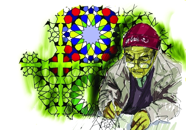 ومن أنواع الزخارف، الأشكال الهندسيّة المعتمدة على أسلوب رياضي، وقياس دقيق، لكل وحدة هندسيّة، سواء أكانت مثلثاً أم مربعاً أم مخمساً أم مسدساً، أم أي شكل هندسي آخر يقوم على الخط المستقيم أو المنحني.