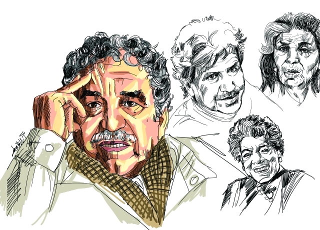 وعن الكاتب الكولومبي غابرييل غارسيا ماركيز، يتحدث المؤلف عن بداياته الادبية. اذ انه نشر اول قصة له في صحيفة «الاسبكتاتور» في الثالث عشر من سنة 1947، وفيها بعض الأثر من قراءاته الاولى لكافكا فبدأ حلمه يتشكل كي يكون كاتبا، لتبدأ بعدها ملامح تشكل كاتب بمواصفات عالمية، وترك عشرات القصص والحكايات والروايات، أما مايا انجيلو - الولايات المتحدة الاميركية.