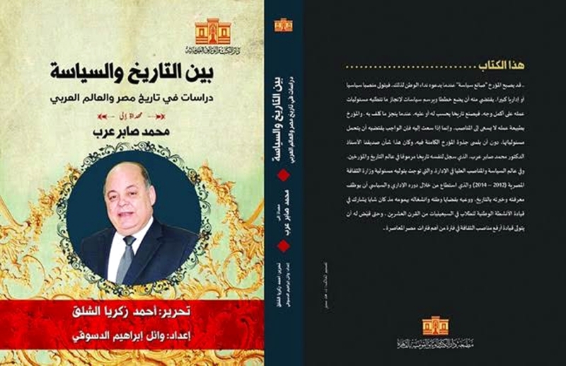 صدر حديثاً عن الهيئة المصرية العامة للكتاب كتاباً بعنوان «بين التاريخ والسياسة.. دراسات في تاريخ مصر والعالم العربي» مُهدى إلى المؤرخ الدكتور محمد صابر عرب وزير الثقافة المصري الأسبق في الفترة من 2012 إلى 2014، ، أحد قامات الثقافة العربية، حيث جمع بين التاريخ، والأدب، والفكر، في شخصية رفيعة المستوى غلب عليها الاهتمام بالقضايا العربية، الذي قضى عمره في العمل الوطني والثقافي حتى تم تتويجه باختياره شخصية العام الثقافية في معرض الشارقة الدولي للكتاب عام 2017.