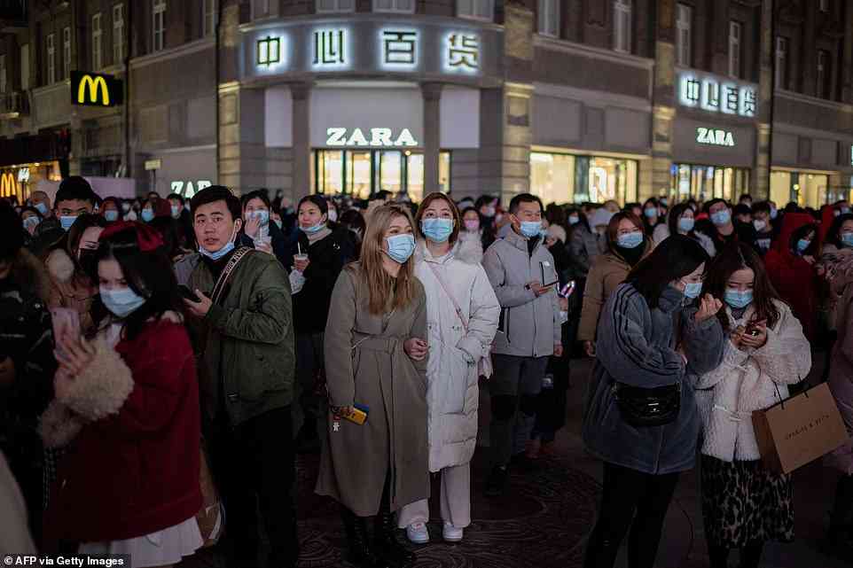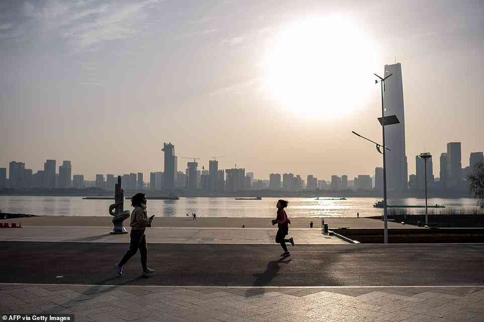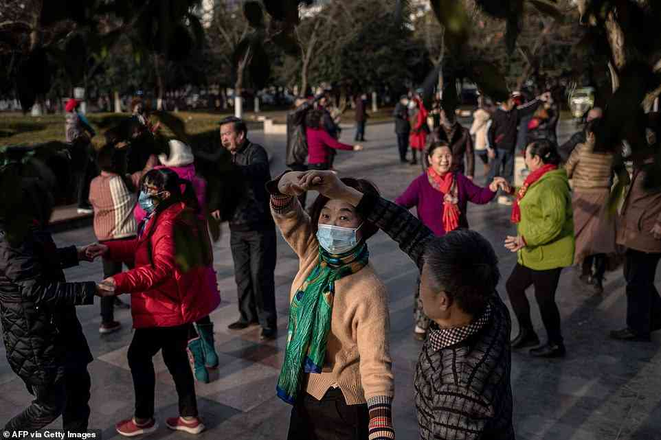 ورقص الأزواج المسنون، مرتدين الكمامات وأيديهم متشابكة بينما كانت المسافات الاجتماعية تذبل في أشعة الشمس الشتوية في حديقة مزدحمة بجوار نهر اليانغتسي، وفق "ديلي ميل".