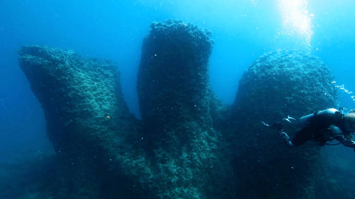 وقاد فريق من علماء الآثار المتخصصين في الأعماق، من بينهم المستكشفة لدى ناشيونال جيوغرافيك كاثلين مارتينيز والمستكشف بوب بالارد، عمليات غوص كشفت عن هياكل أثرية مذهلة في قاع البحر الأبيض المتوسط. تضمنت هذه الاكتشافات: صفوف من الأعمدة الشاهقة التي يصل ارتفاعها إلى أكثر من 20 قدمًا (6 أمتار)، وأدلة على وجود أرضيات من الحجر المصقول وكتل أسمنتية قديمة، ومراسي سفن وجرار تخزين طويلة تُعرف باسم "الأمفورا".