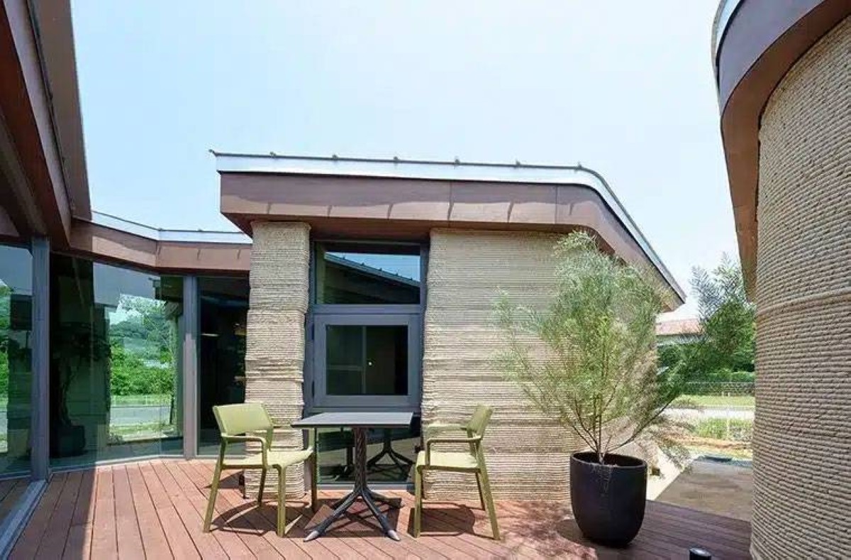 باستخدام مزيج خاص من التراب، الجير، والألياف النباتية، طوّرت الشركة مادة يمكن طباعتها بطبقات دقيقة عبر ذراع روبوتية ضخمة تشكل الجدران الخارجية للمنزل. في الداخل، يدعم إطار خشبي خفيف الهيكل ويوفر ثباتًا إضافيًا. والنتيجة: منزل كامل الاستدامة لا يحتوي على إسمنت، لا في الجدران ولا حتى في الأساسات.