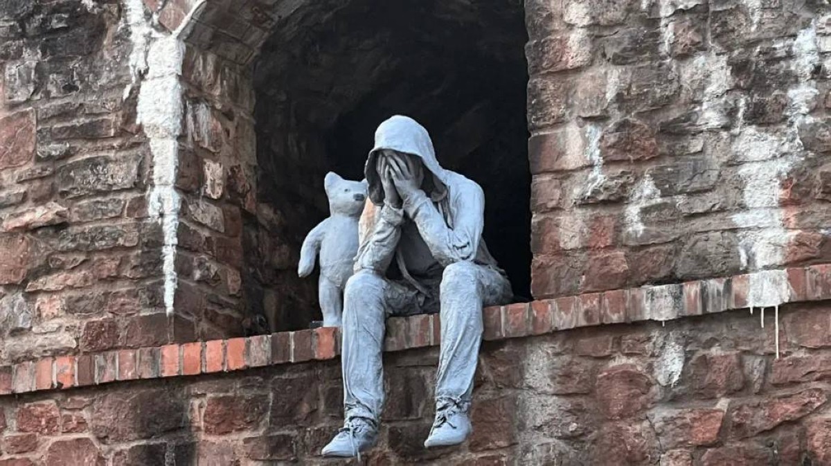 في قلب مدينة بريستول، تقف منحوتة صامتة من الخرسانة، تُجسّد رجلاً مُحاطاً بعالمٍ من القلق، لكنه يجد الراحة في دب صغير يواسيه.