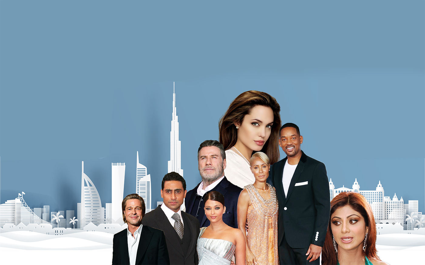 وجدير بالذكر أن عدداً كبيراً من نجوم هوليوود وبوليوود، اختاروا دبي وجهة ومكاناً لهم للإقامة بشكل دائم أو متقطع، وكذا لإطلاق جديد أعمالهم، مثل: أنجيلينا جولي، وبراد بيت وجون ترافولتا، وويل سميث وزوجته، وإبهيشيك وأيشواريا راي باتشان، وشيلبا شيتي، وتوم كروز، وغيرهم الكثير.
