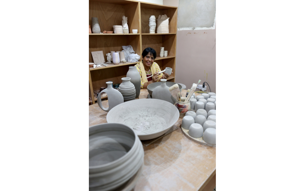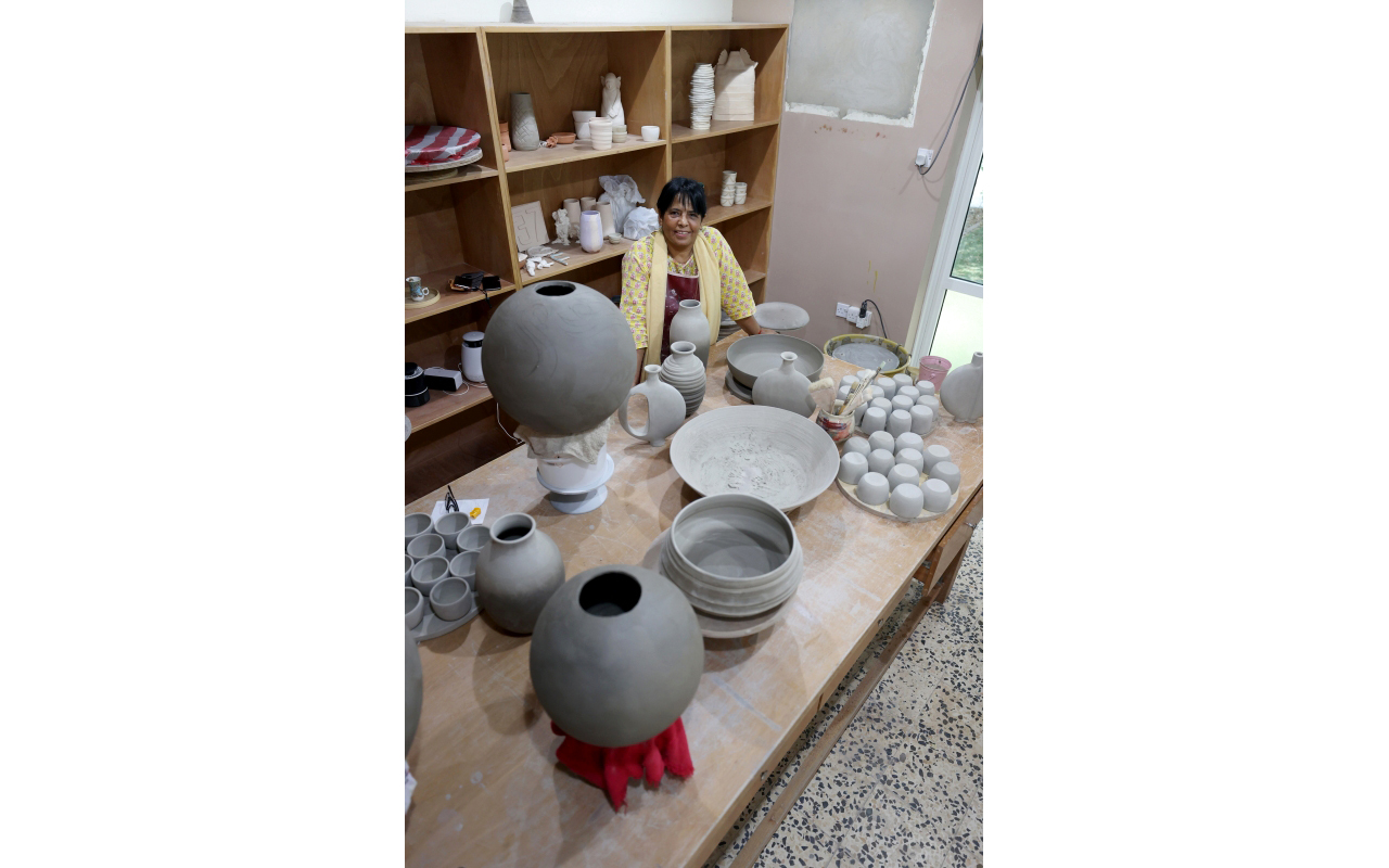 «الفن حق لكل من يشعر به»، قاعدة تتلمس صدقها كلما طفت بين جنبات دبي، وتغلغلت بين أحيائها ودروبها، حيث تُمكنك من اكتشاف أعمال فنية مختلفة، تحمل بصمات مجموعة من الفنانين الذين ولدوا على ثرى هذه الأرض، وشربوا من مائها، وعاشوا تحت ظلال غيومها، فكانت لهم أماً وأباً ومدينة تحتضن أحلامهم وإبداعاتهم. من بين هؤلاء كانت الفنانة الإماراتية شمسة جمعة، التي روّضت بأصابعها الطين، وشكلته كما تشاء، لتنتج منه أعمالاً وقطعاً فنية فريدة، وهو ما مكنها وأفراد عائلتها من تأسيس «بيت الطين» بدعم من مؤسسة محمد بن راشد لتنمية المشاريع الصغيرة والمتوسطة، لتعيد من خلاله الحياة إلى حرفة الخزف التي سادت في الإمارات قديماً، من خلال إنتاج مجموعة من القطع الفنية الفريدة، التي تمزج بين أصالة التراث الإماراتي وجماليات الخط العربي.