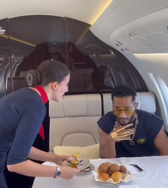 وأظهر الفيديو محمد رمضان في طائرة خاصة أقلته من مطار برج العرب بعد أن تواجد في الساحل الشمالي خلال الفترة الماضية وتوجه إلى تركيا وظهر في الفيديو وهو يرتدي حلياً من الذهب على ظهر كف يده ما أثار غضب الجمهور.