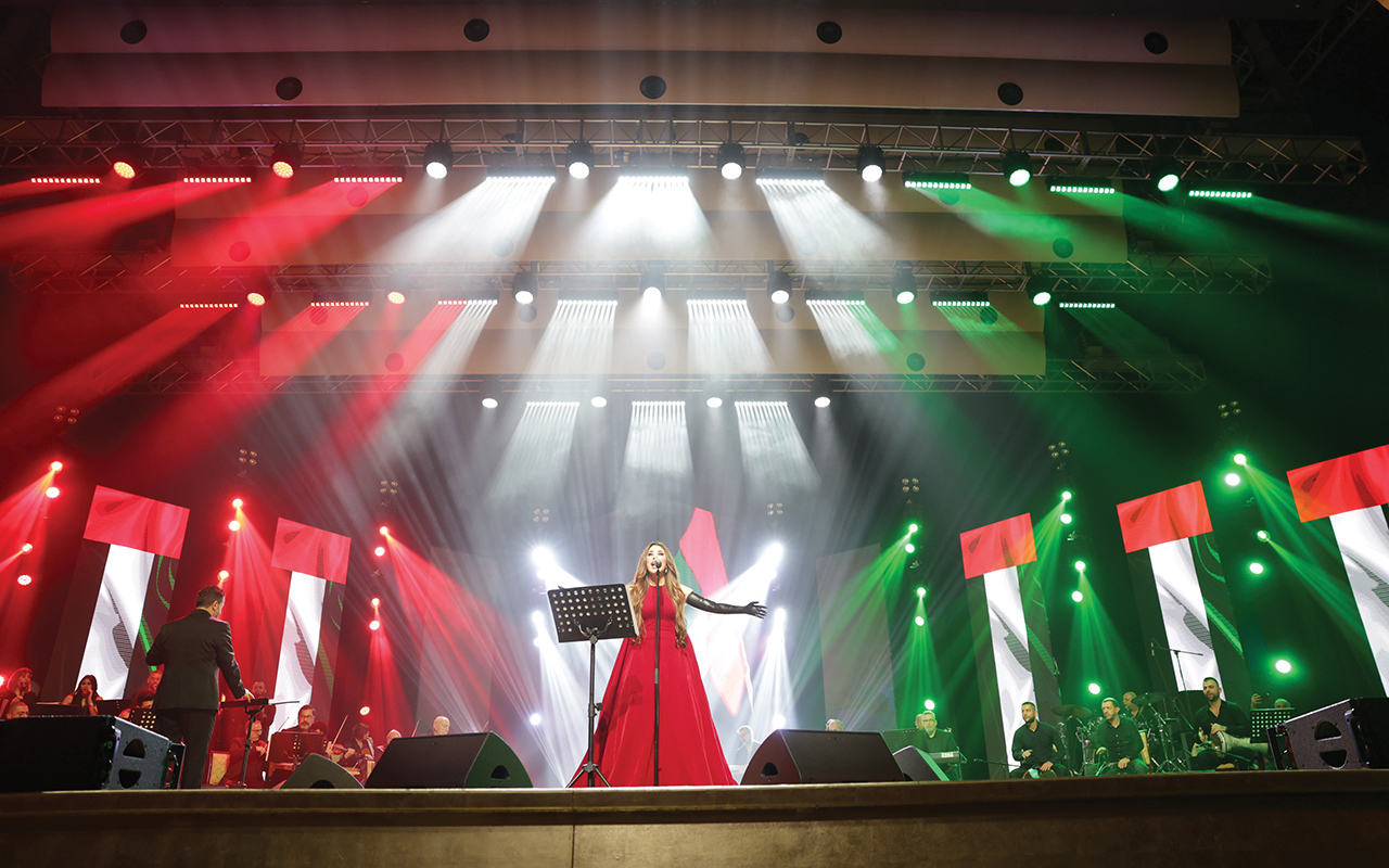 وقدّمت نجوى كرم في الحفل مجموعة من أشهر أغانيها، بدأتها بأغنية «يخليلي قلبك» وألحقتها بـ «خليني شوفك بالليل»، «ما في نوم»، «ملعون أبو العشق»، «مغرومة»، «لو حبيتك».. وغيرها الكثير؛ كما لم تغب المواويل من جدول الحفل الذي ختمته بأغنيتها «زايد مجدها» التي تحمل رسالة محبة إلى دولة الإمارات العربية المتحدة.