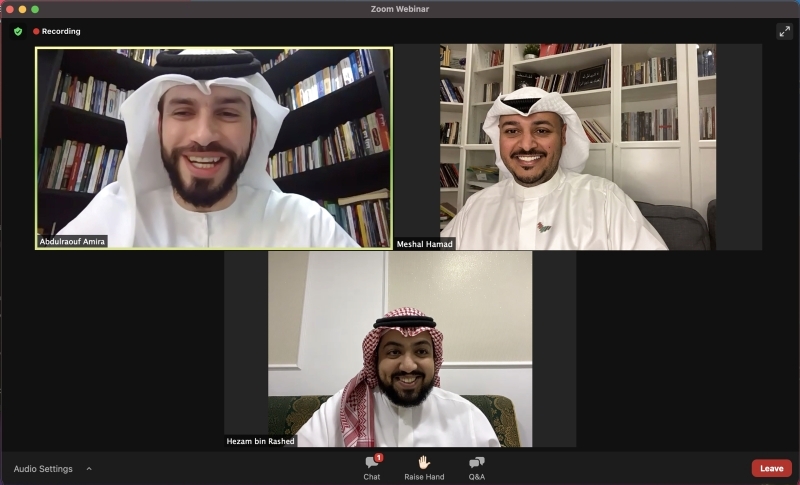 استضافت هيئة الشارقة للكتاب في المنطقة الشرقية الكاتبين الكويتي مشعل حمد والسعودي حزام بن راشد، في جلسة حوارية بعنوان «ملتقى الكتاب» نظمتها (عن بعد) عبر تطبيق التواصل المرئي «زووم»، استعرضا فيها مسيرتهما الأدبية وبعض منجزاتهما الإبداعية وعلاقتهما بالقراء.