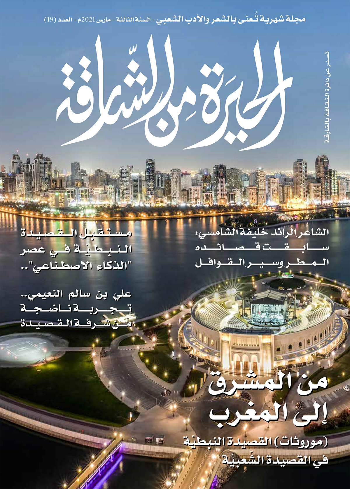 صدر عن دائرة الثقافة بالشارقة العدد 19 من مجلة «الحيرة من الشارقة» التي تعنى بالشعر النبطي والشعبي، مشتملاً على قصائد وافرة خليجية وعربية، إضافة إلى قراءات نقدية وتوثيق لعدد من رواد القصيدة النبطية في الإمارات والخليج.