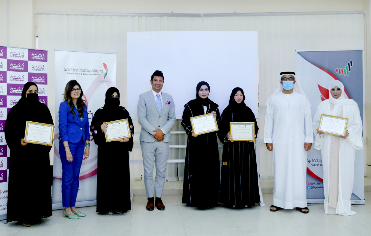 كرمت جمعية الفجيرة الاجتماعية الثقافية، ضمن مبادرتها النسائية "واحة حواء" 5 فائزات إماراتيات في الدفعة الثانية من جائزة "المرأة المتميزة 2021" وذلك في حفل أقامته الجمعية ، بمقرها في إمارة الفجيرة، بحضور خالد الظنحاني رئيس مجلس إدارة الجمعية وأميت ياداف رئيس قسم التسويق في "كشخة للأزياء" وعدد من أعضاء الجمعية.