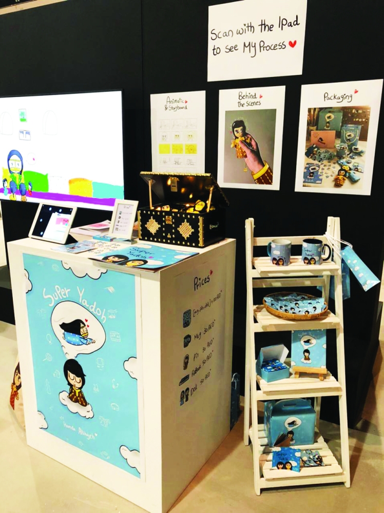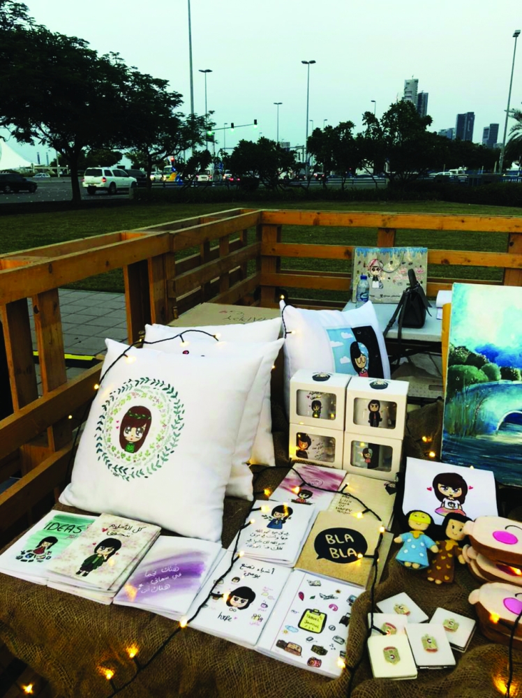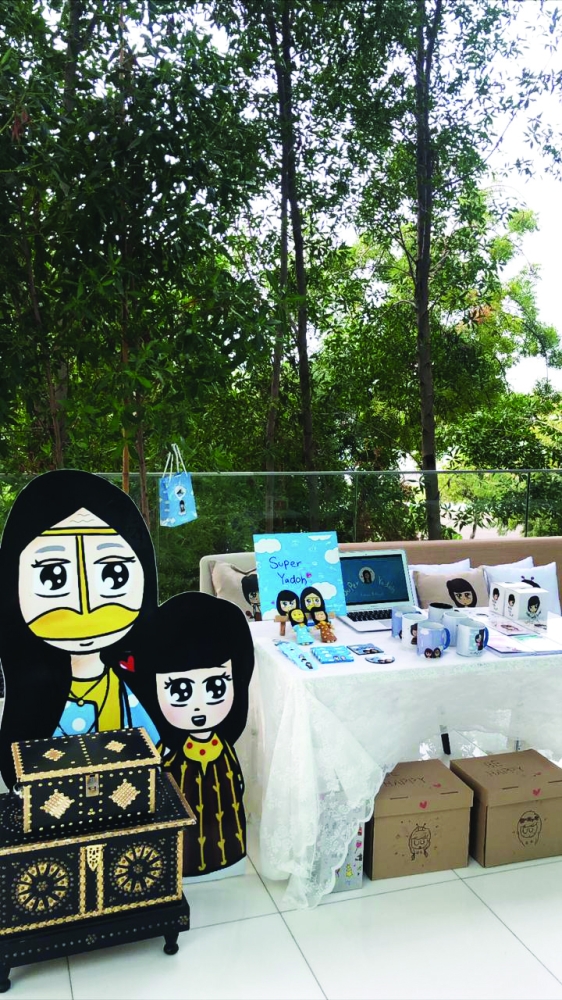 كوني فنانة، أقوم برسم وتصميم شخصيات ورسومات بطريقة كرتونية وأقوم بطباعة هذه التصاميم على أشكال (شخصيات كارتونية من أفكاري تفتح نافذة على المجتمع وتعبر عنه بابتسامة ومرح أصممها بكميات صغيرة دون الاستعانة بالمطابع إلا للكميات الكبيرة كما أني أضيف لمستي الخاصة في كل عمل أقوم به، فأصبح الكثير يميز أعمالي دون وجود اسمي.