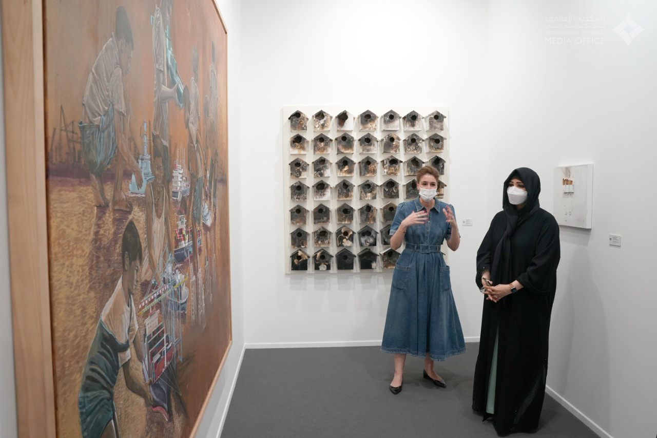 وقامت سموها بجولة في المعرض، ضمن المساحة المُشيدة خصيصاً للحدث الأبرز من نوعه في المنطقة، الذي تستقبل نسخته هذا العام 50 صالة فنية رائدة في الفنون الحديثة والمعاصرة من الإمارات و31 دولة، مع التركيز على فناني منطقة الشرق الأوسط ودول الجنوب، بالإضافة إلى حديقة المنحوتات، التي تحتضن أعمالاً تركيبية كبيرة الحجم، ما يبرز التنوّع الكبير من الفنانين المشاركين والأعمال المعروضة، والتوجهات الفنية المختلفة، ويعكس الهوية متعددة الثقافات، التي تتميز بها دبي.
