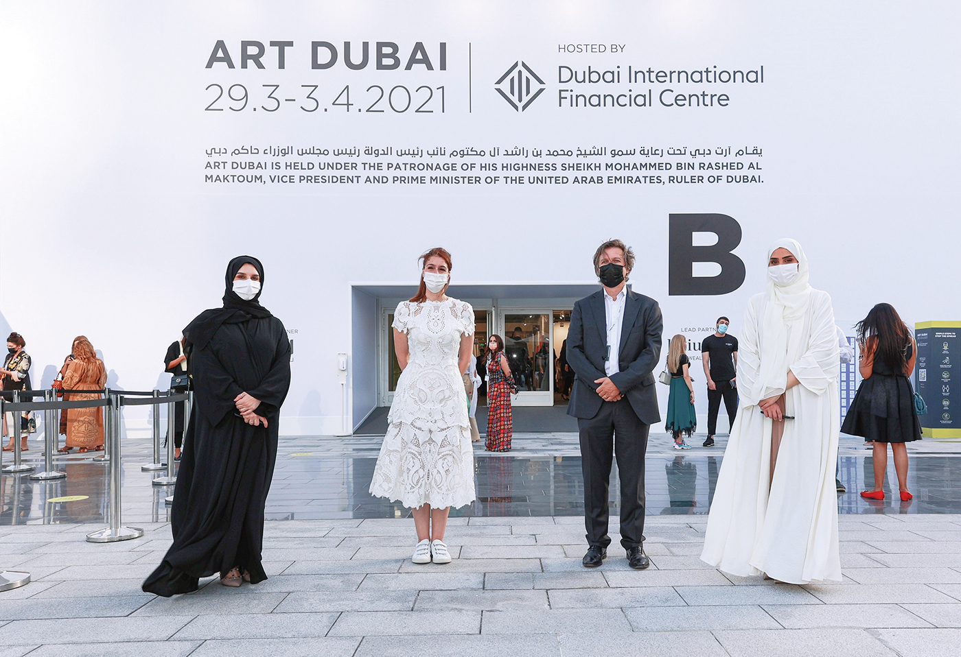 تواصلت فعاليات معرض «آرت دبي» بنسخته الرابعة عشرة، التي تحل متزامنة مع اليوبيل الذهبي لدولة الإمارات، والتي تهدف بشكلٍ رئيس إلى توسيع دائرة الحوار الفني في المنطقة بشكل عام، كي لا يقتصر الأمر على مراكز الفنون التقليدية كما جرت العادة، حيث تشارك في المعرض صالات عرض من جميع أنحاء العالم بأعمال فنية معاصرة، إضافة إلى برامج متميزة، وشراكات جديدة، تبرز منها الشراكة مع «دبي للثقافة»، التي أدركت أهمية التواصل المستمر مع مكونات المجتمع الإبداعي المحلي، وتحفيز رواده على مواصلة إسهاماتهم في إثراء المشهد الثقافي في إمارة دبي، ضمن دورها الحيوي الذي تلعبه، بوصفها أمينة على القطاع الثقافي في الإمارة، كما تشكل جزءاً من أولويات استراتيجيتها المحدّثة، الرامية إلى تمكين الإبداع والمبدعين، وتعزيز الاقتصاد الإبداعي في الإمارة، وصولاً إلى ترسيخ مكانة دبي، كمركز عالمي للثقافة، وحاضنة للإبداع وملتقى للمواهب.