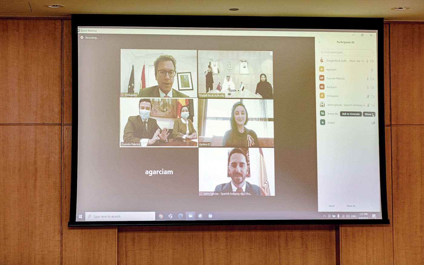 وشهد توقيع الاتفاقية كلّ من ألفاريز بارثي د. أنطونيو، سفير المملكة الإسبانية لدى دولة الإمارات العربية المتحدة، وخايمي إغليزيا سانشيز سيرفيرا، نائب رئيس البعثات والشؤون السياسية والثقافية، وإيلينا غونزاليس، رئيس قسم التعاون الثقافي في الوكالة الإسبانية للتعاون الإنمائي الدولي، وآراثيلي غارسيا، مدير الوكالة الإسبانية للتعاون الإنمائي الدولي، ولويزا مورا فيلاريخو، رئيس المكتبة الإسلامية في الوكالة الإسبانية للتعاون الإنمائي الدولي، وإيمان بوشليبي، مدير إدارة مكتبات الشارقة العامة.