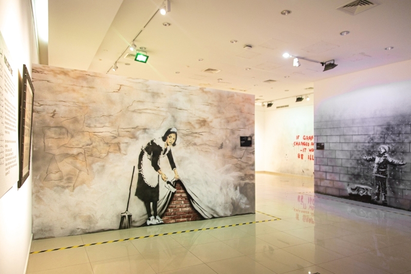 وتتضمن منصة هذا المعرض أكثر من 100 عمل فني من أعمال الفنان العالمي اللامع «بانكسي»، موزعة على مساحة 1500 متر مربع في مركز الفنون داخل مول الإمارات، حيث تم تجديدها بالكامل وتخصيصها لهذا الحدث الرائد.