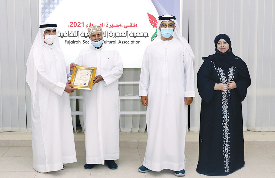 نظمت جمعية الفجيرة الاجتماعية الثقافية، مساء أول من أمس، في مقرها بالفجيرة، ملتقى «مسيرة العطاء 2021» التكريمي تحت شعار «كفيتم ووفيتم»، وذلك برعاية «سوق العرب» بالفجيرة، بحضور خالد الظنحاني رئيس مجلس إدارة الجمعية، ومحمد خليفة الزيودي مدير دائرة الموارد البشرية بحكومة الفجيرة، وموزة مسعود مديرة قطاع الشؤون الاجتماعية في الجمعية.