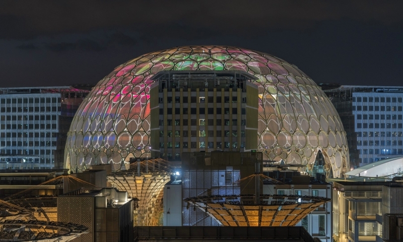 باقة روائع فنية ومضامين ثقافية نابضة بقصص شعوب العالم وجماليات الحضارة الإنسانية بمانيها المتنوعة، يشتمل علهيا إكسبو 2020 دبي، حيث تشكل بمجملها لوحة ثرية بألوان الجمال والتفرد، وهو ما تبدى بجلاء، أخيراً، مع اقتراب موعد الافتتاح، إذ كشف منظمو الحدث عن سلسلةٍ من صور المباني الأساسية للمعرض ومساحاته العامة التي تحتضن روائع ونتاجات 192 دولة بأجنحتها الثرية بالإبداع والاستشراف للمستقبل حيث تتنافس جميعها في هذا السياق، على الإبهار والابتكار.