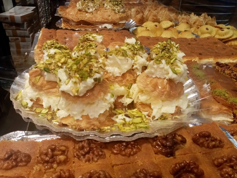 عندما تمر من أمام محلات بيع الحلويات في دمشق يبهرك جمال منظرها، الذي يتفنن أصحابها بطريقة عرضها على واجهات محلاتهم، إذ تشكل معلماً أساسياً من معالم المدينة الحضارية كدور العبادة والخانات والمكتبات والحمامات الأثرية.