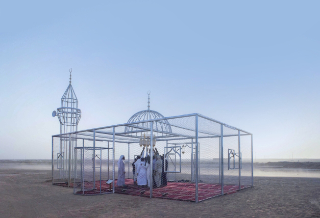 ومن جانب آخر، يستكشف معلم الرياضيات السعودي عجلان غارم عبر أعماله التركيبة كيفية فهم المجتمعات السعودية لثقافتها والتعبير عنها في ظل العولمة وتغيّرات ديناميات السيطرة والقوة بعمله الفني التركيبي «للجنة أبواب عدة».