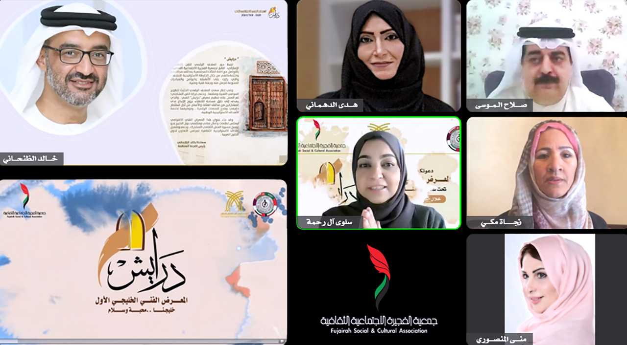 انطلقت، الأربعاء، فعاليات الدورة الافتراضية الأولى من المعرض الفني الخليجي «درايش» تحت شعار «خليجنا.. محبة وسلام»، الذي ينظمه المتحف الرقمي للفن التشكيلي الإماراتي التابع لجمعية الفجيرة الاجتماعية الثقافية، بالتعاون مع الجمعية الخليجية للإعاقة، ويستمر ثلاثة أيام.