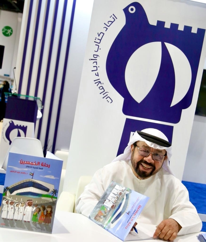 الدكتور جاسم الزعابي الذي وقع على كتابه في ركن التواقيع في معرض أبوظبي الدولي للكتاب وفي جناح اتحاد كتاب وأدباء الإمارات، باعتباره عضواً في الاتحاد. قال: إن الكتاب سرد لرحلة قمت بها بصحبة 7 أطفال كدلالة على إمارات الدولة الـ 7 والبداية من متحف الاتحاد في دبي.