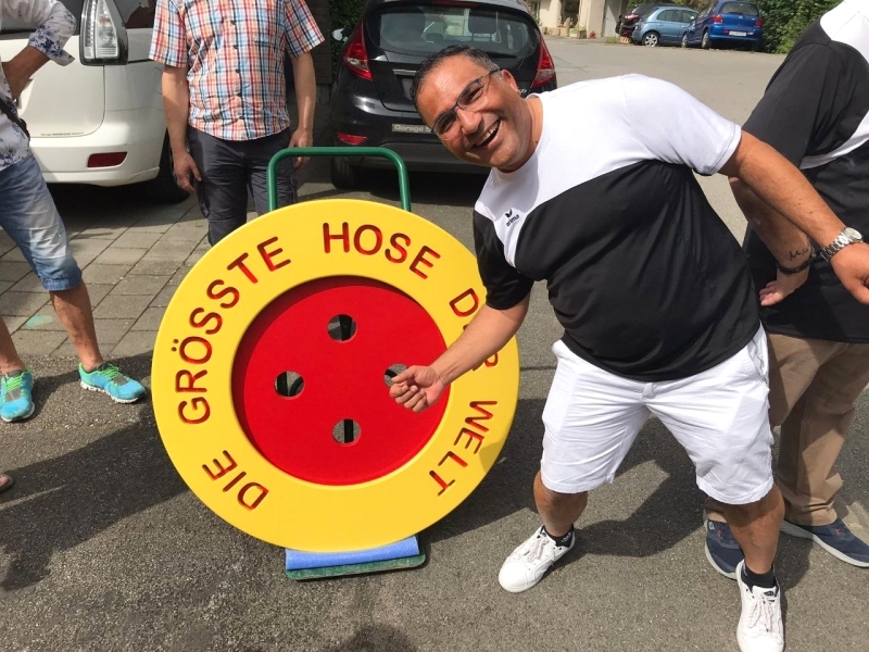 يوضح صاحب اللقب أن بلدة «بيرو مونستر» الجبلية التي يقيم فيها تحتضن أطول برج إذاعي في سويسرا، والآن أنتج فيها أكبر بنطال في العالم، ويبدو أنها ستحقق المزيد، فقد طلبت منه سيدة سويسرية خياطة غطاء لطاولة تنوي صناعتها بطول 70 متراً لدخول موسوعة غينيس للأرقام القياسية، وسوف تدعو أهالي البلدة للاحتفال معها وتقديم الضيافة لهم على الطاولة نفسها.