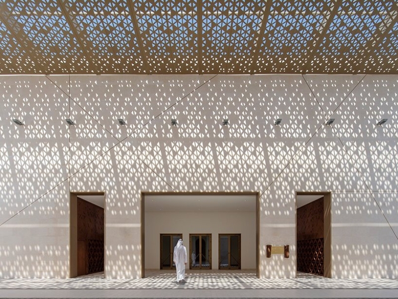 الأنماط والأشكال المختزلة هندسياً تتجنب التصنيف الإسلامي التقليدي، في سرد مصمم لنقل المصلى من العالم الخارجي اليومي، لتقديم تجربة روحية داخلية، وهو ما تعكسه الصور الملتقطة للصرح، والتي قدمتها شركة الدباغ للهندسة المعمارية، نقلاً عن موقع «ديزاين بوم» المتخصص في العمارة والتصميم.