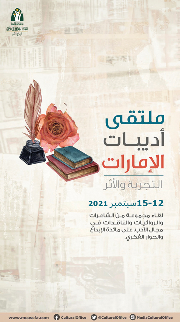 ينظم المكتب الثقافي والإعلامي بالمجلس الأعلى لشؤون الأسرة بالشارقة ملتقى أديبات الإمارات بعنوان «التجربة والأثر» وذلك على مدى أربعة أيام، 12 – 15 سبتمبر الحالي، يتضمن جلسات في النقد والشعر والرواية، والتجارب الخاصة، والحوار مع المبدعين، وقراءة لبعض النصوص، وكذلك استضافة عدد من الأديبات الإماراتيات اللواتي شاركن في تأليف كتاب حديث العزلة.
