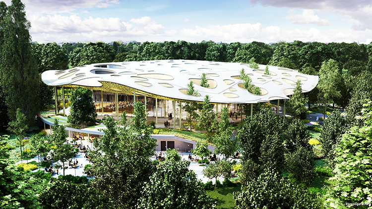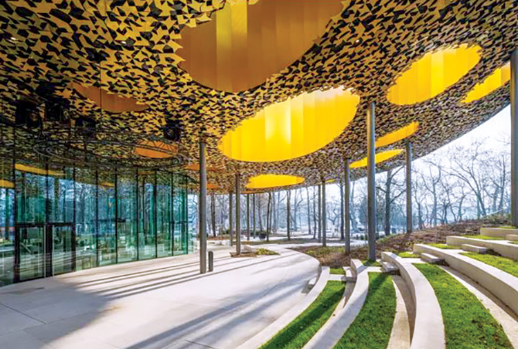 حمل المتحف توقيع السوريالي، سو فوجيموتو، المهندس المعماري الياباني الذي يشتهر بنماذجه الهندسية المتشكلة من كتل من التغضنات التي يستخدم في صنعها كل الأشياء التي تقع تحت يديه. وقد استلهم فكرة «فطيرته» هذه من جذور اللوتس، الذي يشكل موطناً لبيت الموسيقى الجديد.
