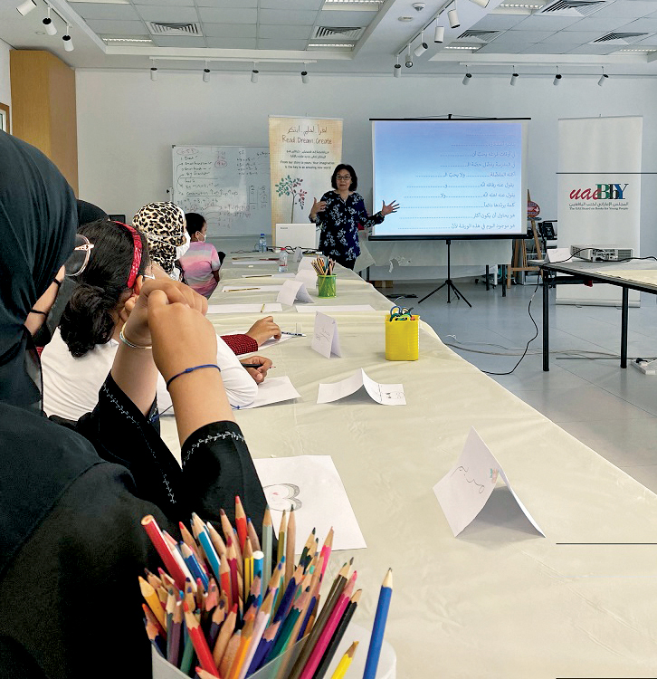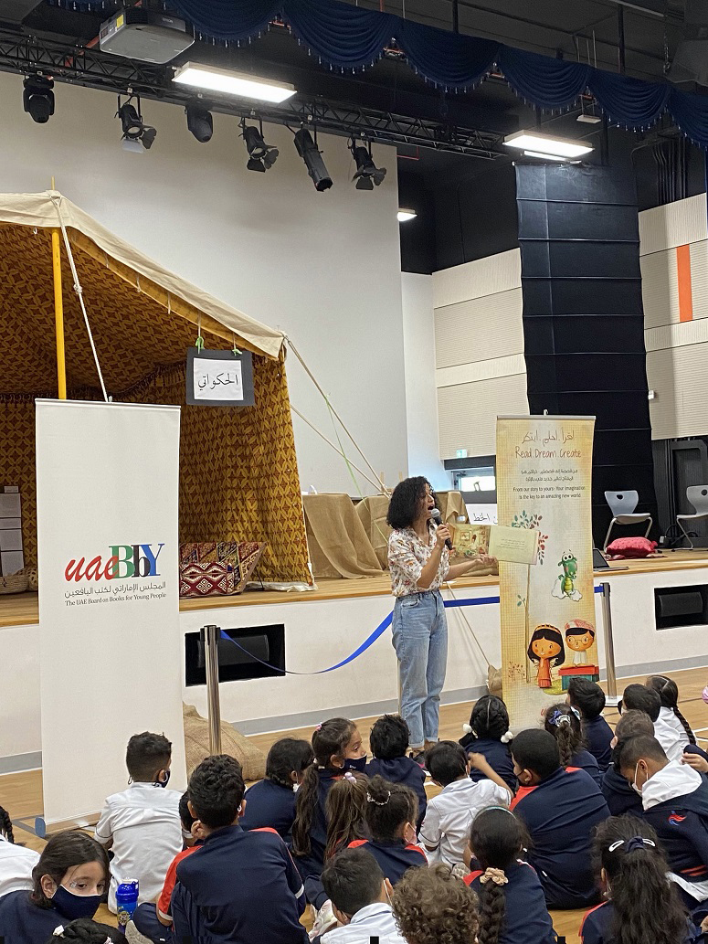 وأخذت مؤلفة ورسامة كتب الأطفال، تمارا سمير قشحة، طلاب معهد التكنولوجيا التطبيقية في أم القيوين، في رحلة أدبية لقراءة مقاطع من كتاب»كرة برتقالية اللّون«فيما قدمت مؤلفة كتب الأطفال اللبنانية الحائزة على عدة جوائز، سمر محفوظ برّاج لطلاب مدارس الإمارات الوطنية بالعين، جلسة قرائية ملهمة حول كتاب»كرة كرة«وكتاب»شربر جائع«.